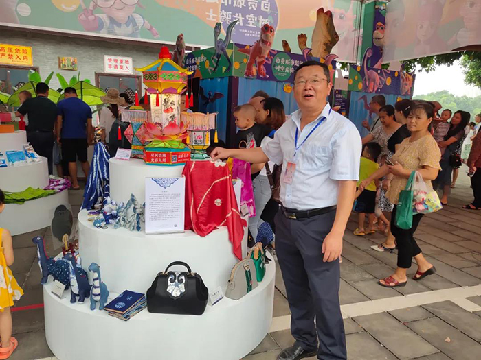 自贡文广旅局副局长江波带队莅临自贡展台,对鸿山集团旗下自贡市扎染工艺有限公司展出的自贡扎染文创产品给予了高度评价,并对公司本次参赛作品山茶花系列“扎染真丝时尚手提包”代表自贡参赛团从270家企业500余套1000余件旅游商品(文创产品)中脱颖而出,获得本届文创产品设计大赛“铜奖”表示祝贺。江波副局长提出要加大自主研发力度,开发更多扎染文创产品,让更多老百姓购买扎染文创产品,将自贡扎染产业做大做强。